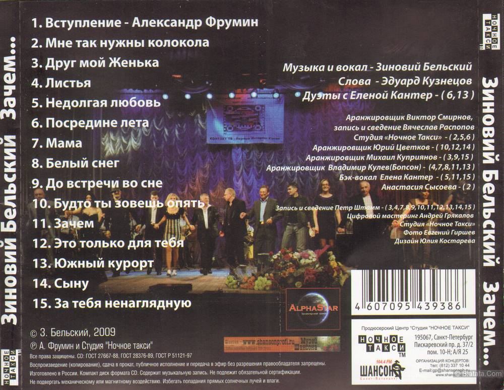 Если вы знакомы с творчеством Зиновия Бельского и вам оно нравиться, то пластинку «Зачем…» купить однозначно стоит. А если вы еще не слышали его песни, но любите лирическую эстраду, то возможно стоит найти этот диск. Остается воздать должное студии «Ночное такси», которая выпускает очень разную музыку по стилю и подаче, но однозначно составляющую жанр – русский шансон.